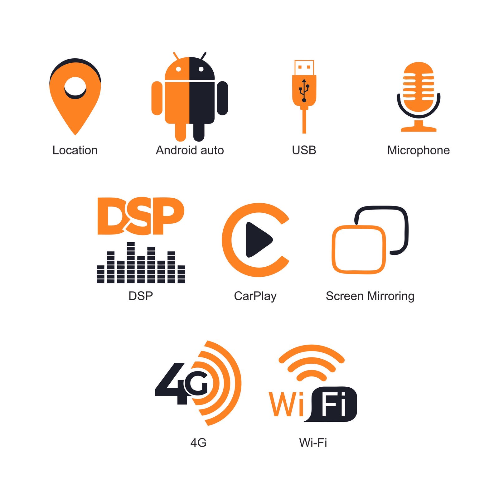 CarPlay and Android Auto connection make screen easier to make calls, use maps, listen music and check messages with voice commands.